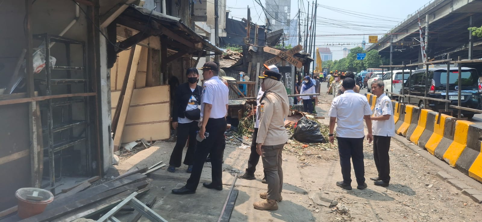"Ya, pagi tadi, kami bersama 100 petugas gabungan dari unsur Satpol PP, Dishub DKI, Bina Marga, PPSU serta unsur tiga pilar melakukan kegiatan penertiban bangunan. Kami juga kerahkan 1 alat berat dan beberapa truk," ujarnya.