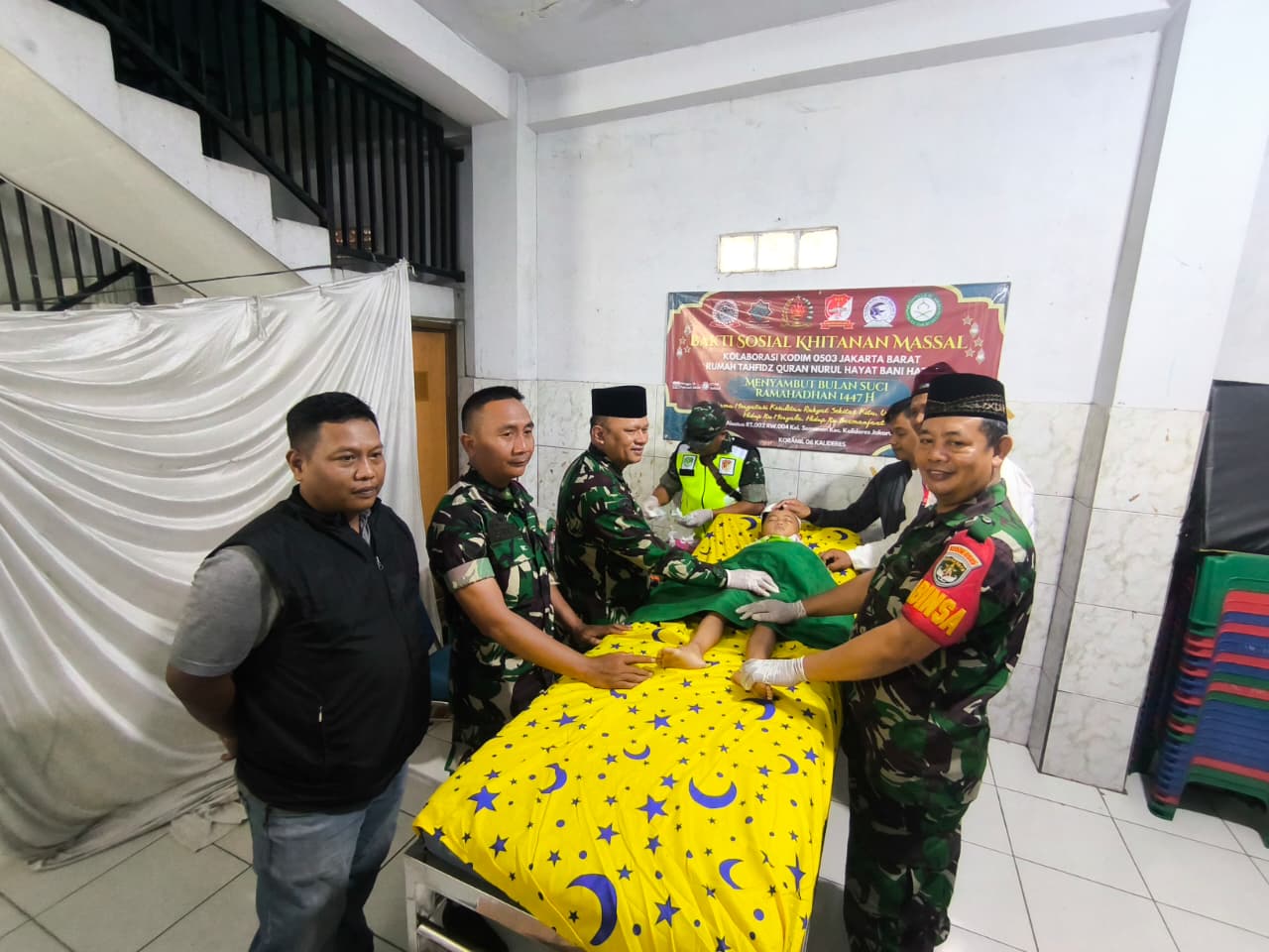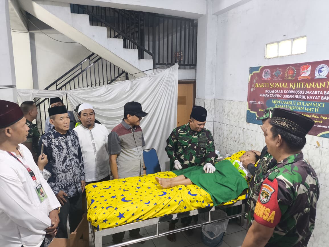 Sebanyak 30 anak yatim dan dhuafa mengikuti bakti sosoal sunatan massal gratis yang di selanggarakan kolaborasi Kodim 0503 Jakarta Barat, Koramil 06 Kalideres dan Kelurahan Semanan Kecamatan Kalideres di RW 04, Minggu (15/2)