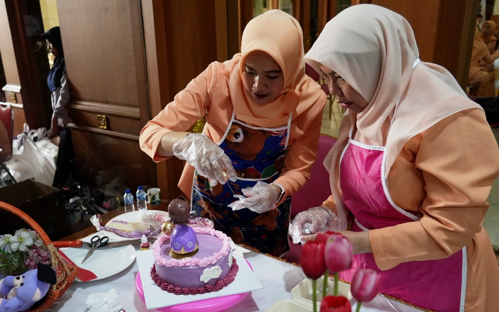 Hari Ulang Tahun (HUT) Dharma Wanita Persatuan (DWP) ke-26 dan Peringatan Hari Ibu (PHI) ke-97 tingkat Kota Administrasi Jakarta Barat dimeriahkan lomba menghias kue ultah (ulang tahun) DWP, di Ruang Ali Sadikin, Kantor Wali Kota Jakbar, Senin (15/12).