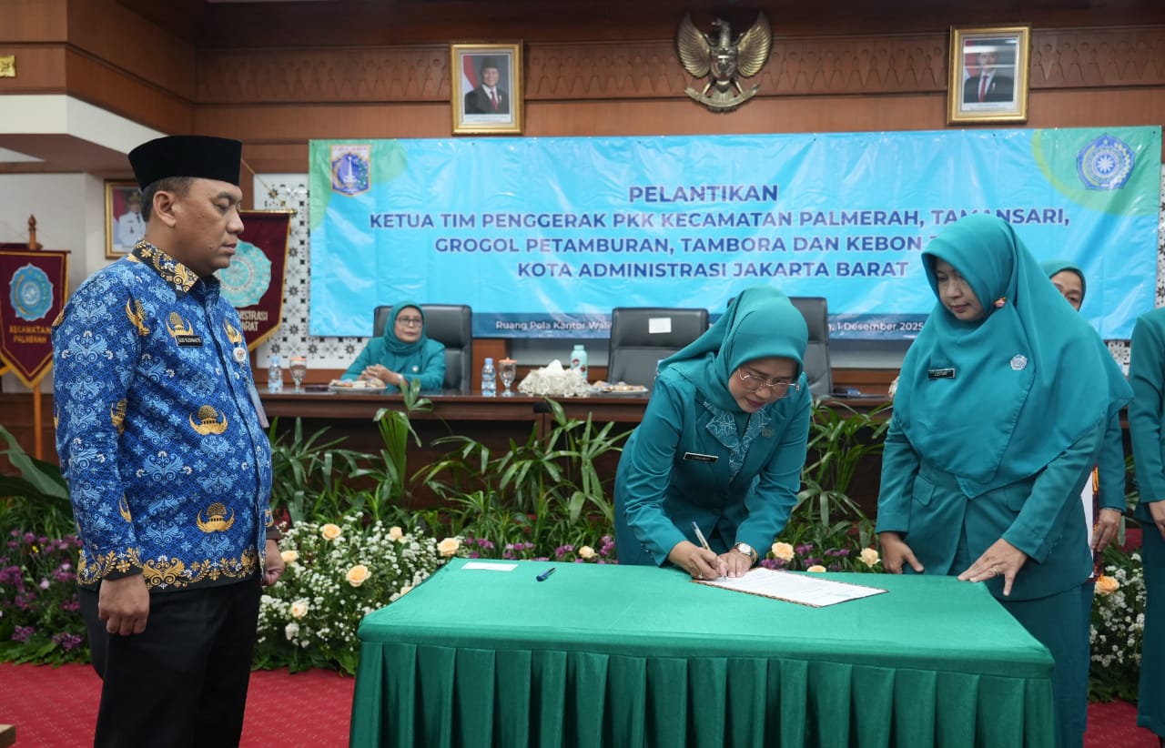 Untuk informasi, mereka yang dilantik adalah Tri Rasti Purwanti Pangestu Aji sebagai Ketua TP PKK Kecamatan Tambora, Lestari Ady Wiryono Agus Mulyadi Ketua TP PKK Kecamatan Kebon Jeruk, Heffi Octaviani Febriandri Suharto Ketua TP PKK Kecamatan Palmerah, Mia Afriliani Ketua Raditian Ramajaya TP PKK Kecamatan Grogol Petamburan, dan Tri Angelina Simson Hutagalung Ketua TP PKK Kecamatan Taman Sari. (Aji)