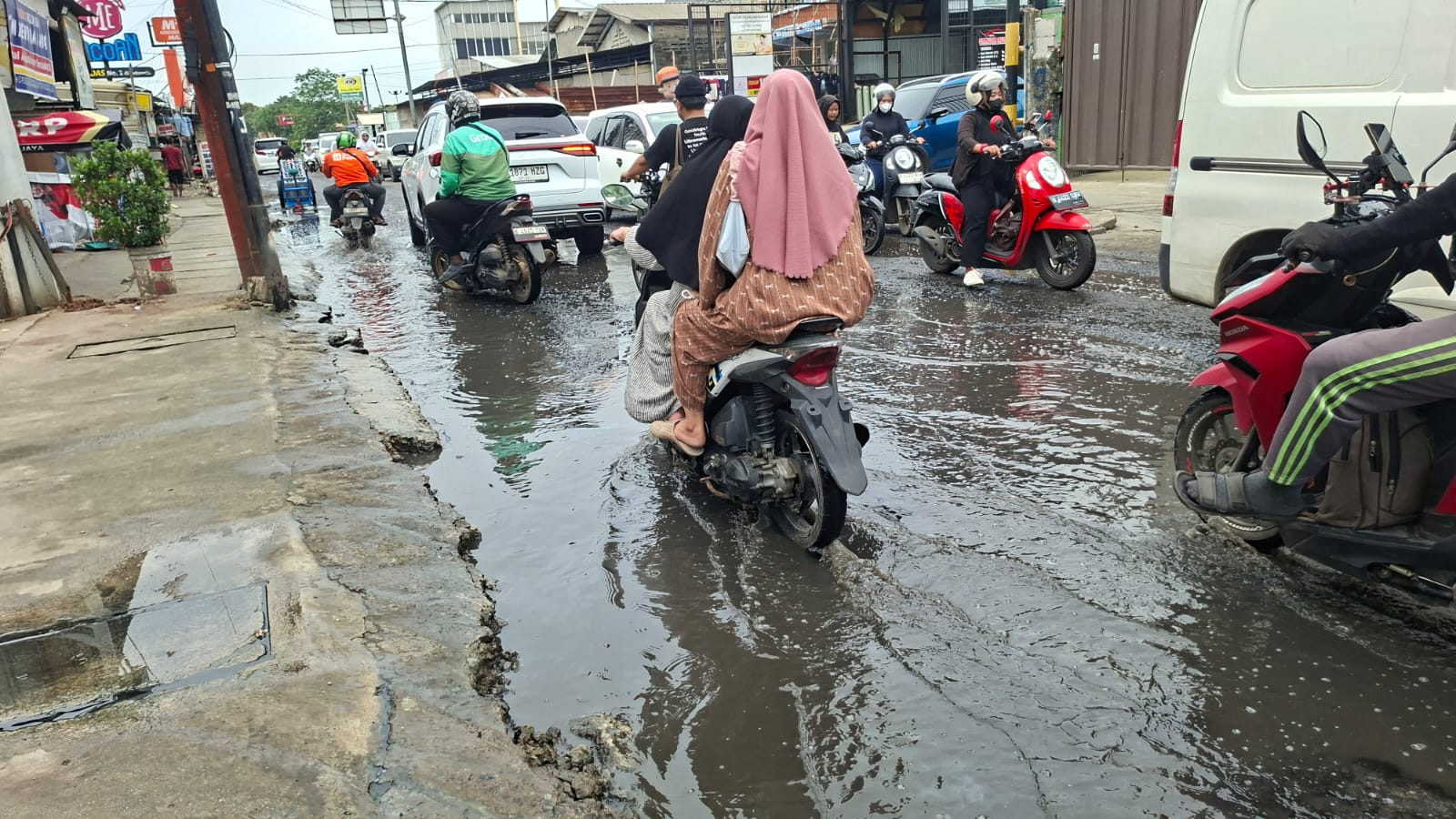 Sebelumnya, tampak di lokasi pada Senin (2/3) sore, air got membentuk kolam kecil berukuran 2 x 3 meter di tepi jalan. Air kotor berbau menyengat itu meluber hingga membuat becek badan jalan.