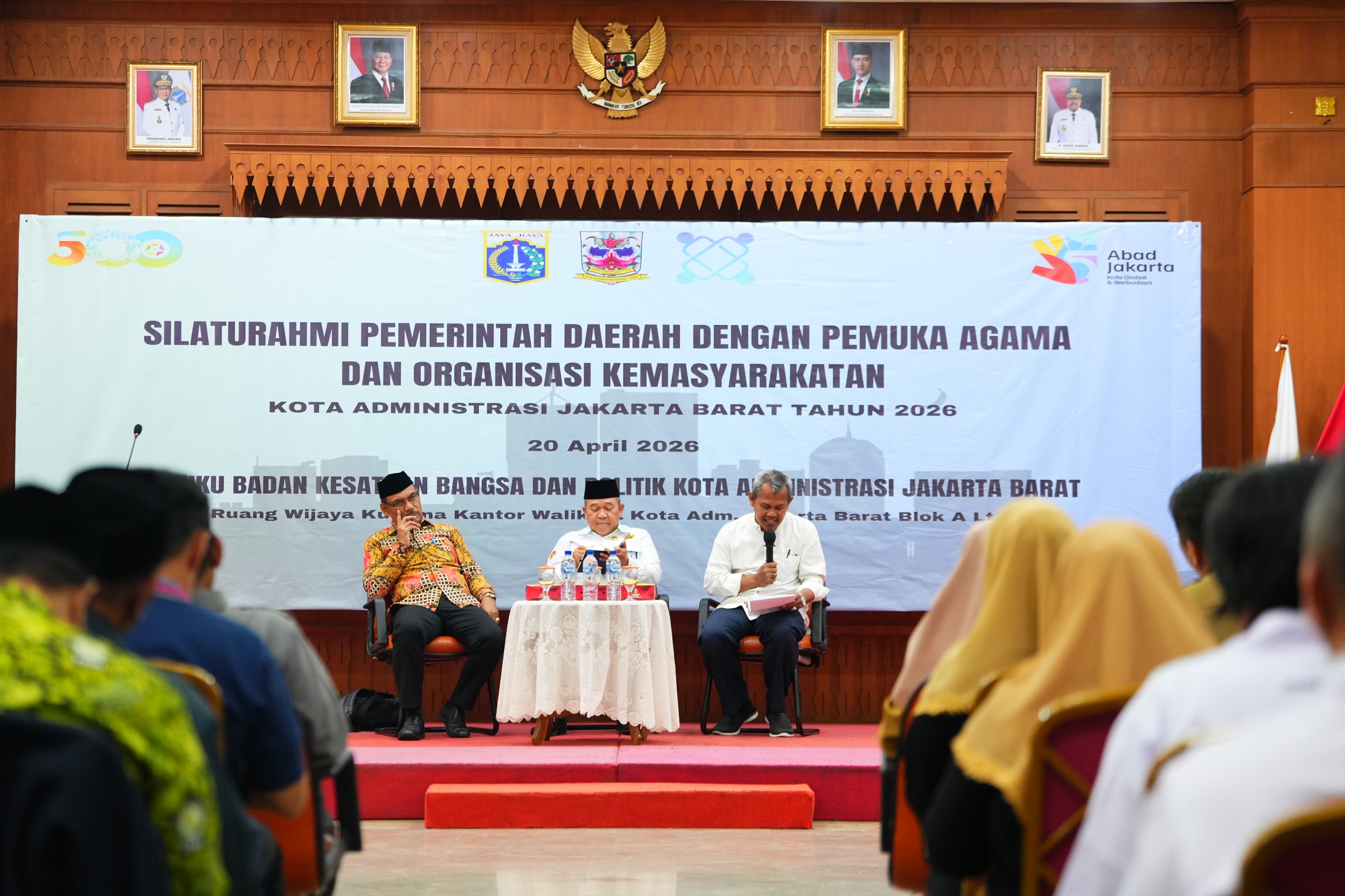 Pemerintah Kota (Pemkot) Administrasi Jakarta Barat melalui Suku Badan Kesatuan Bangsa dan Politik (Kesbangpol) menggelar silaturahmi pemerintah daerah dengan pemuka agama serta organisasi kemasyarakatan (Ormas) di Ruang Ali Sadikin, kantor wali kota, Senin (20/4).
