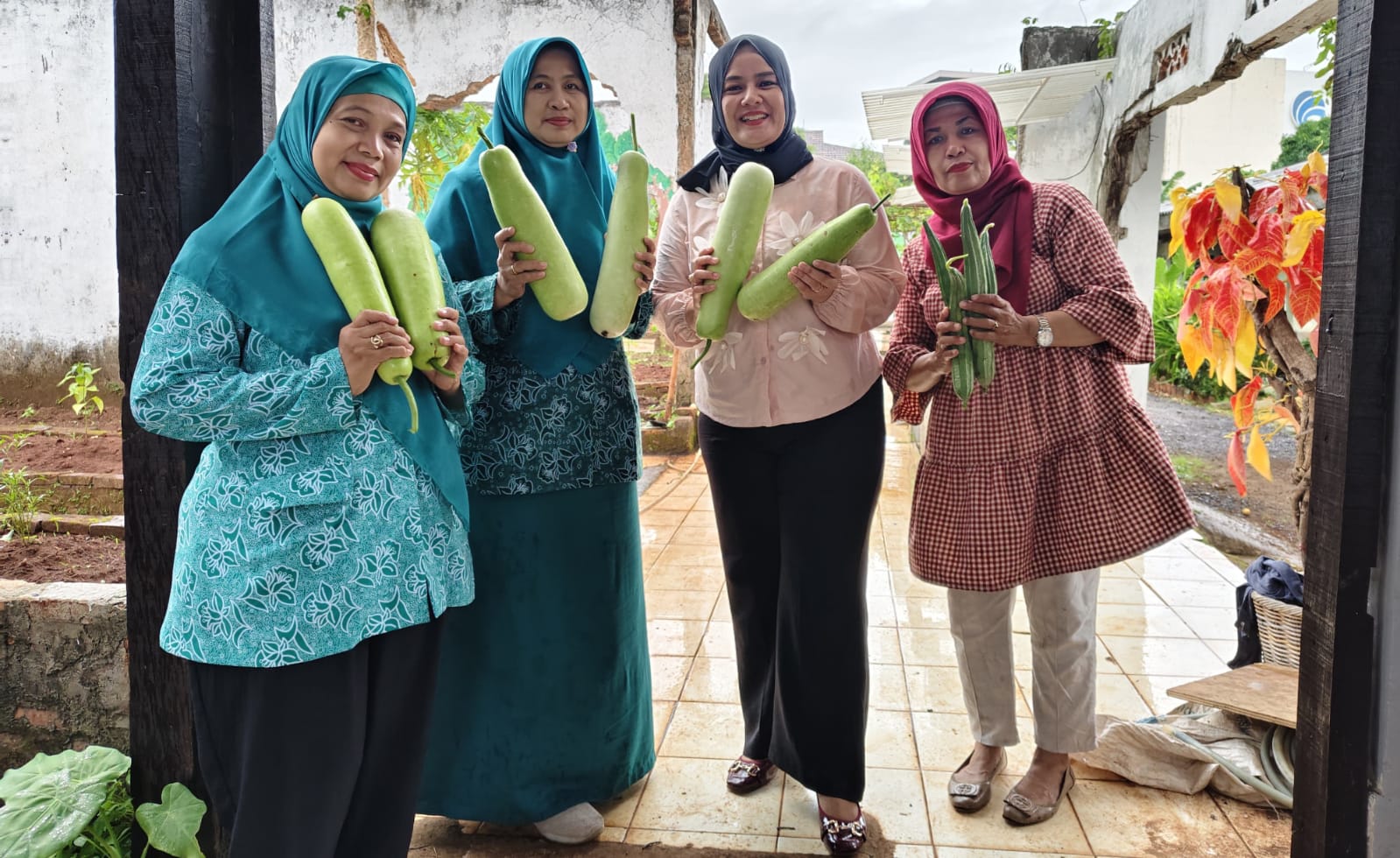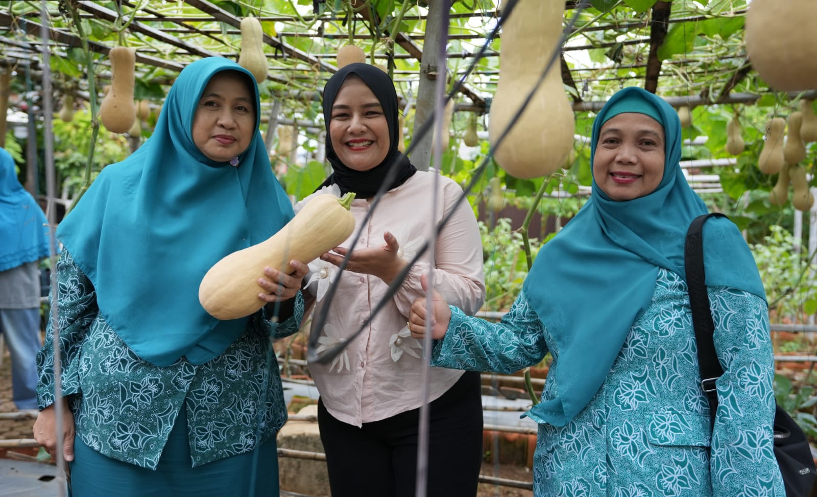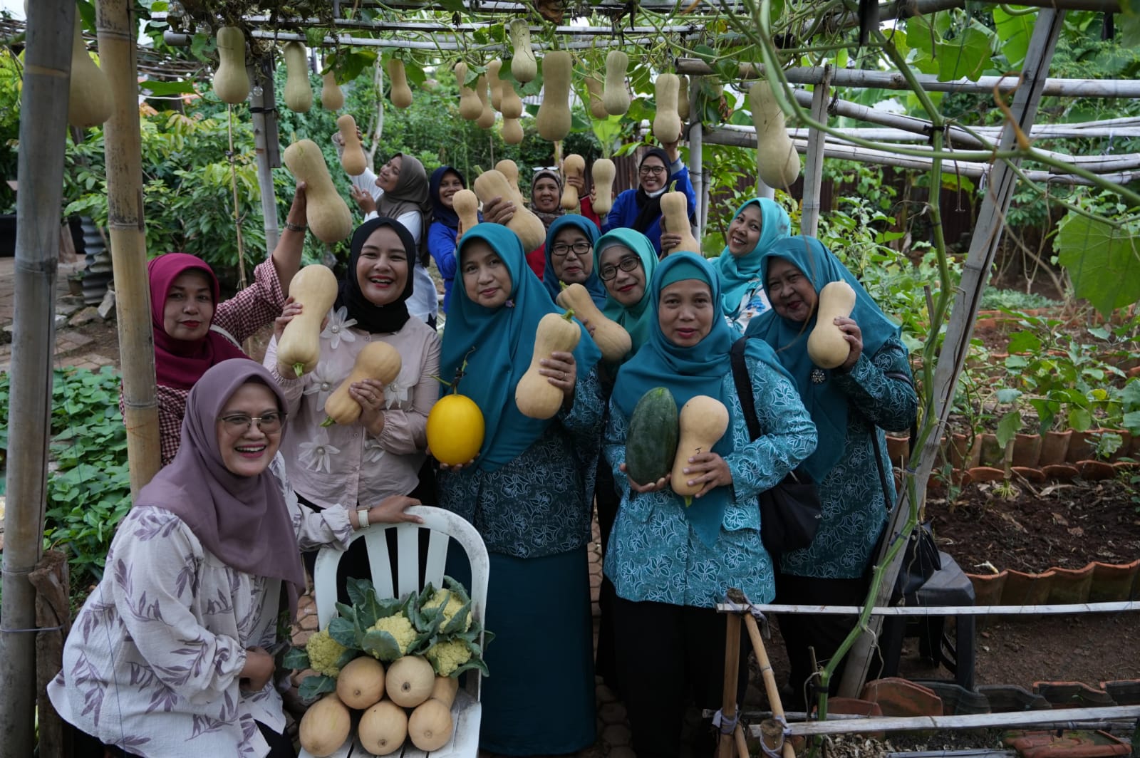 Jajaran pengurus TP PKK Kecamatan Kebon Jeruk Jakarta Barat dan PKK Kelurahan Kelapa Dua panen labu madu sebanyak 37 kilogram di kebun kawasan Perumahan Purna Dharma Caraka X Komplek Yonhub RW 04, Selasa (16/12).