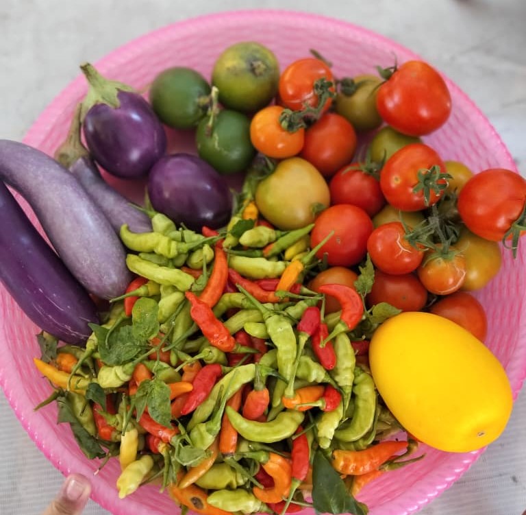 Lurah Taman Sari, Abdul Malik Raharusun, mengatakan kegiatan panen bersama PKK Kelurahan Taman Sari menghasilkan masing-masing sebanyak 2 kg tomat, 2 kg cabai, dan 500 gram terong.
