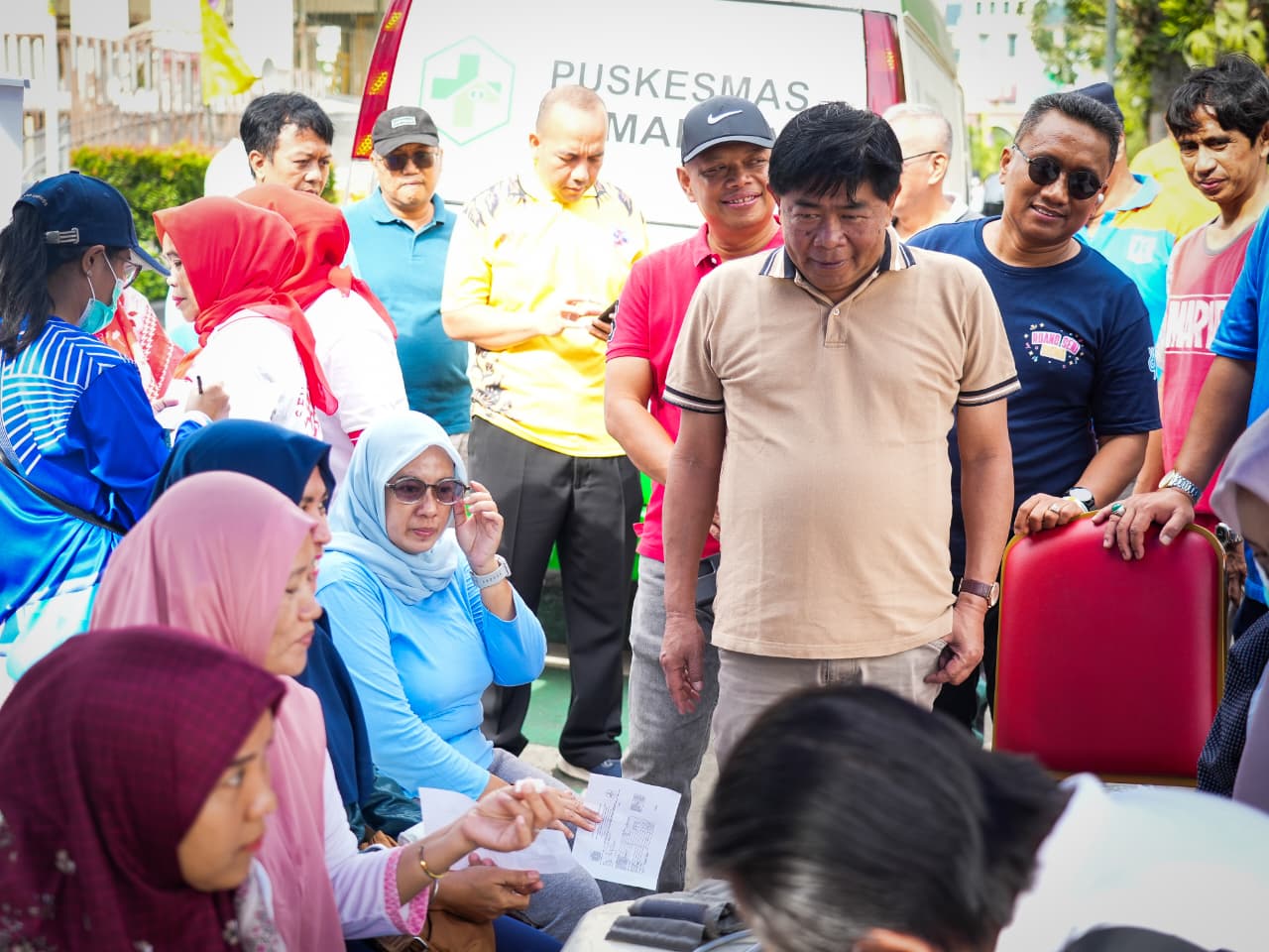 Saat meninjau pelaksanaan HBKB, Plt Wali Kota Jakarta Barat, Yuli Hartono, menyempatkan diri untuk cek kesehatan pada layanan Cek Kesehatan Gratis (CKG) Puskesmas Kecamatan Taman Sari. Hadir pula Asisten Perekonomian dan Pembangunan Setko Jakbar, Imron Syahrin, camat dan lurah serta para pejabat di lingkungan Pemkot Jakarta Barat.