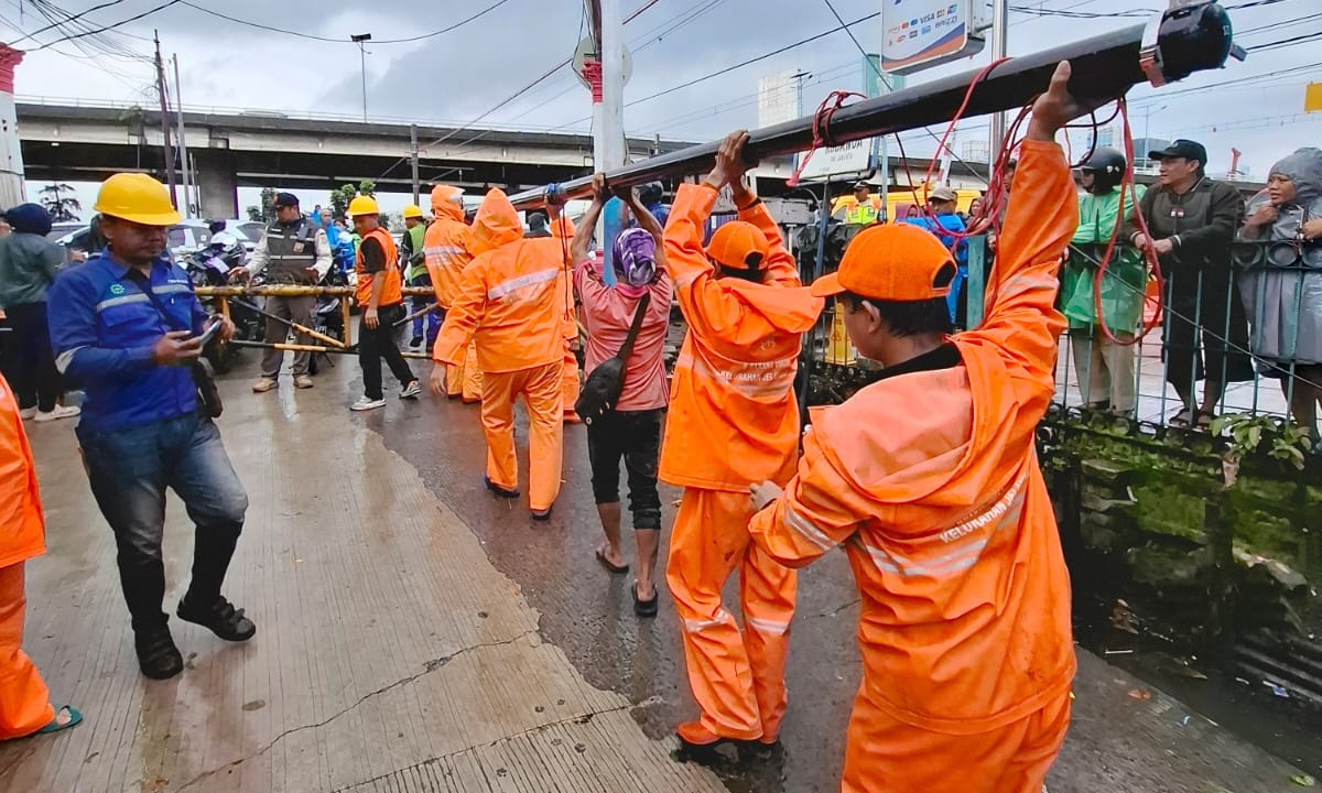 Lurah Jelambar, Pradista Machdala Putra, mengatakan untuk membantu mengatasi tiang miring yang membahayakan, pihaknya mengerahkan sebanyak 15 personel PPSU Jelambar.