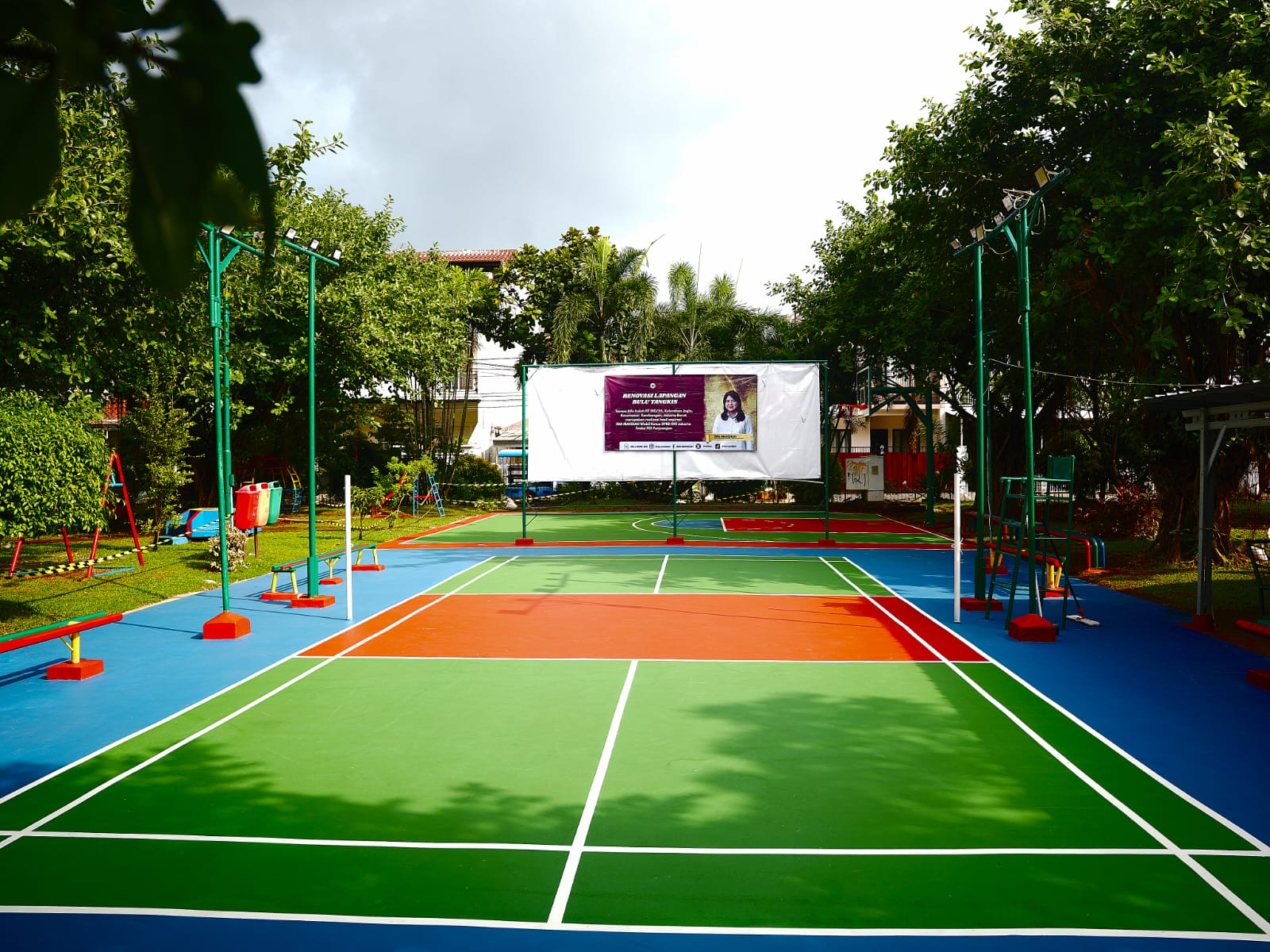 Renovasi lapangan badminton dan basket yang berada di Taman Kodok RW 05 Kelurahan Joglo Kecamatan Kembangan Jakarta Barat rampung.