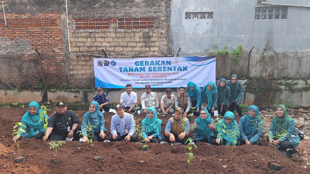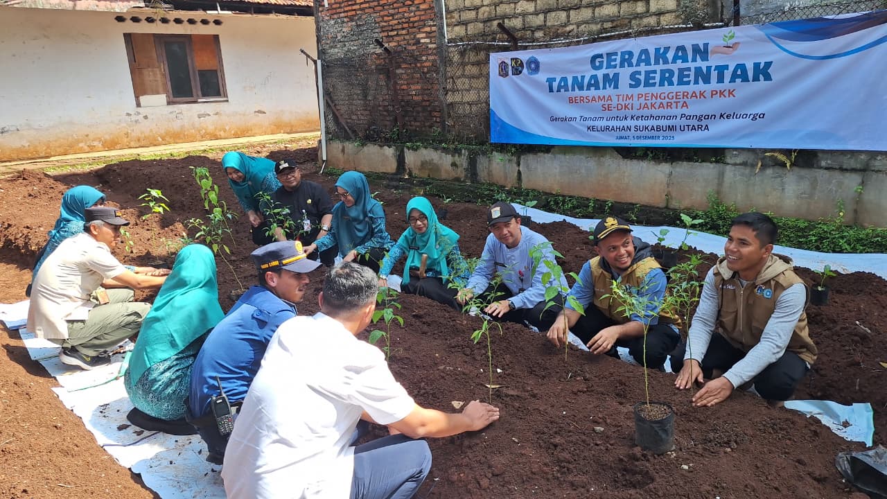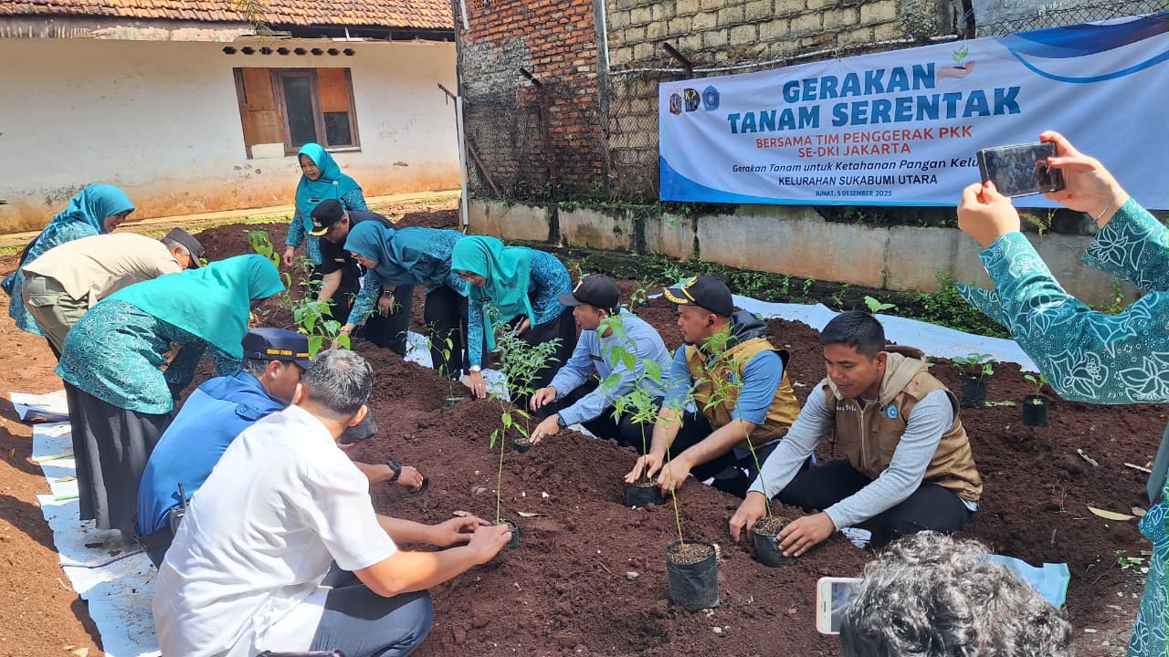 Gerakan Tanam Serentak di wilayah Kelurahan Sukabumi Utara menanam 100 bibit tanaman produktif di Kebon Mandiri Mujib RT 02 RW 06, Sukabumi Utara, Kebon Jeruk, Jakarta Barat.