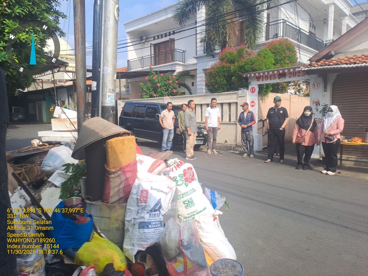 Warga RW 02 Kelurahan Sukabumi Selatan melakukan kerja bakti membersihkan sampah lingkungan sebagai pemberdayaan masyarakat dalam menjaga kebersihan wilayah.
