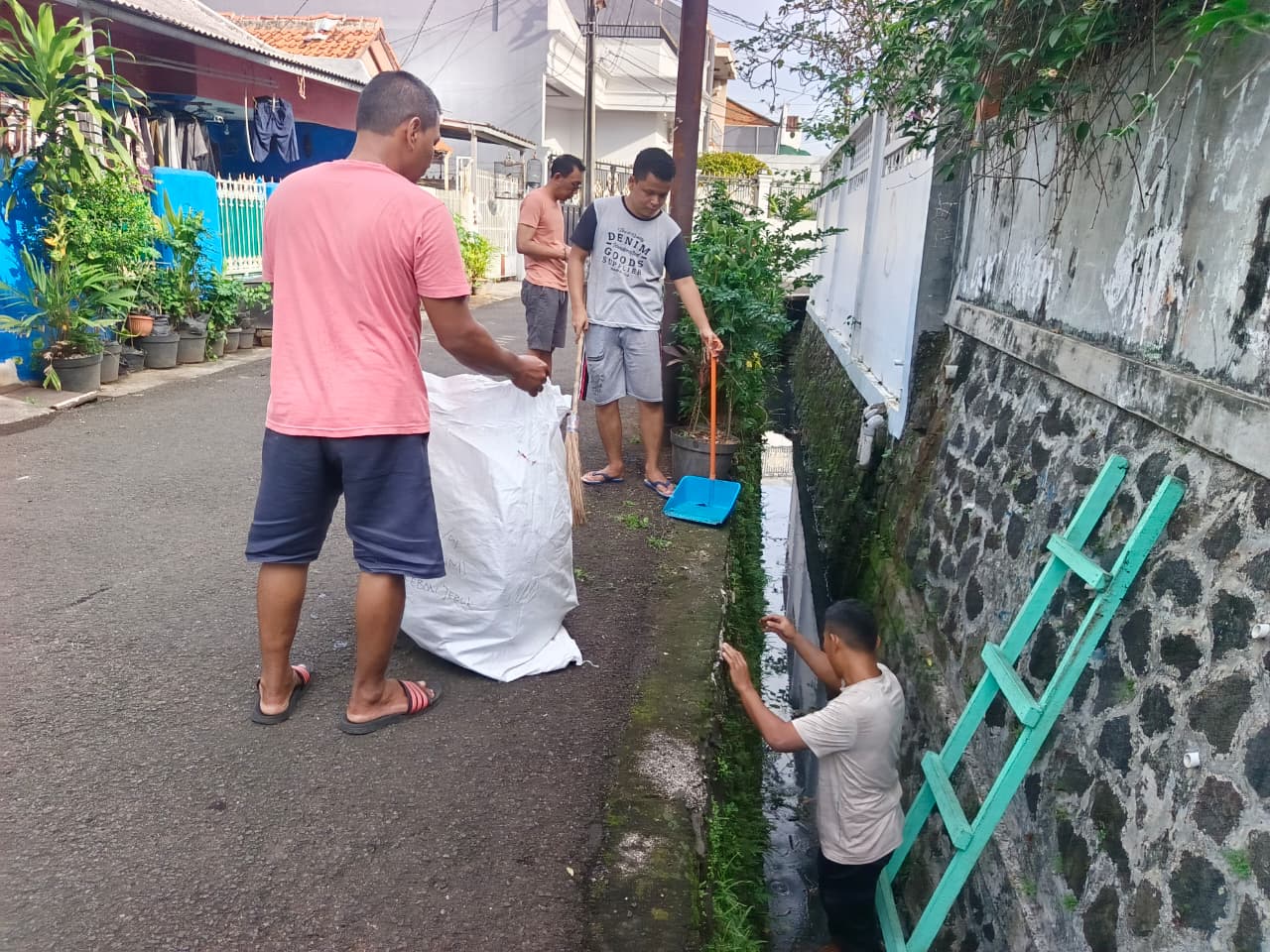Warga Sukabumi Selatan melaksanakan kegiatan kerja bakti membersihkan sampah dan saluran di lingkungan RW 04 Sukabumi Selatan, Kebon Jeruk, Jakarta Barat, Minggu (21/12).