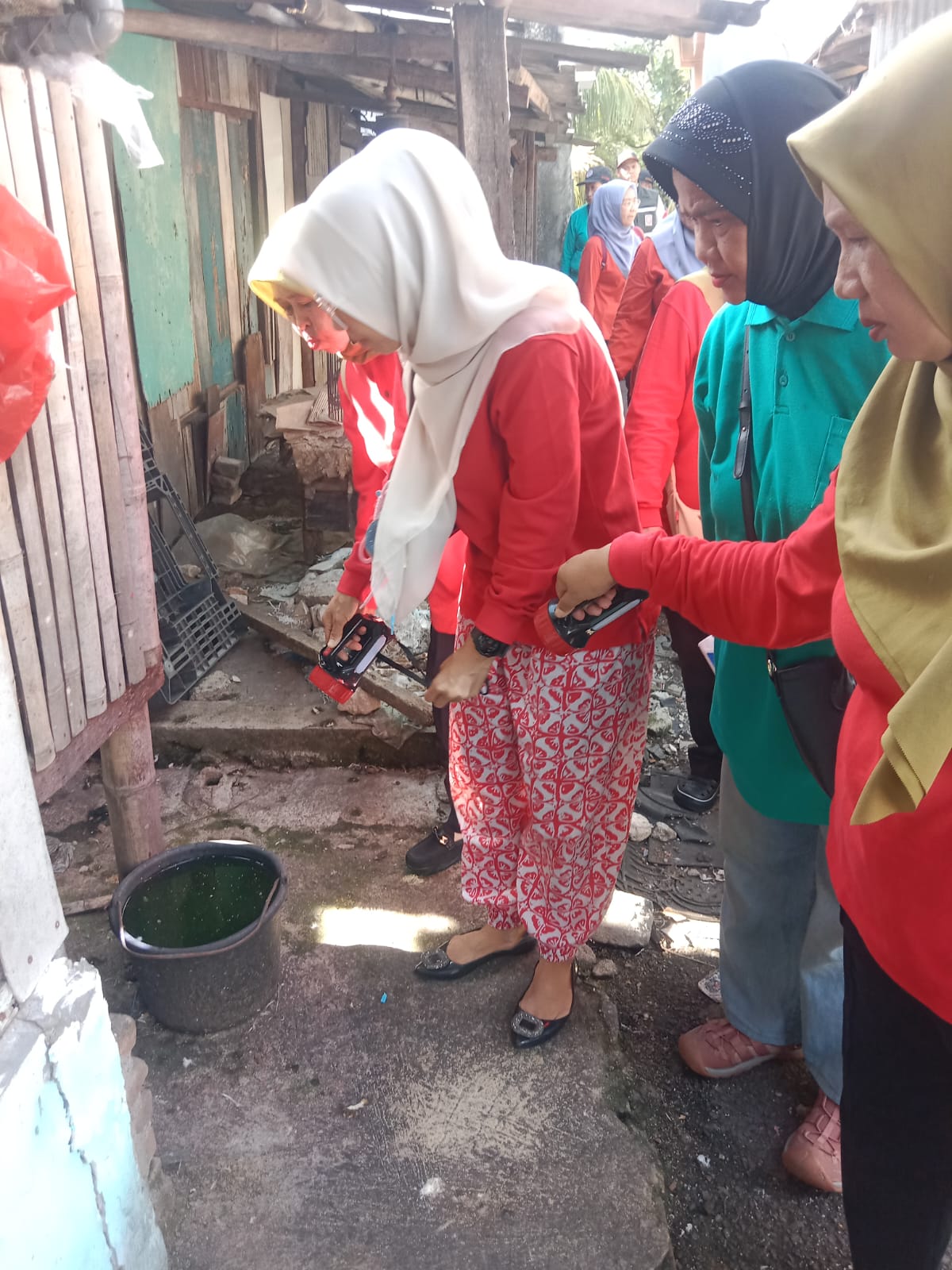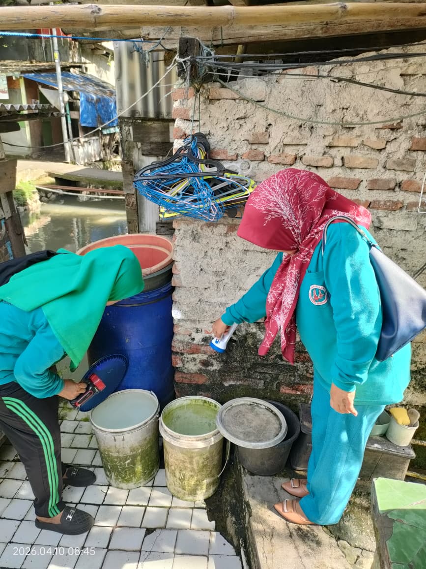 "Sekira pukul 09.00 WIB, kami keliling secara door to door memeriksa jentik nyamuk pada sejumlah tempat penampungan air," ujarnya.