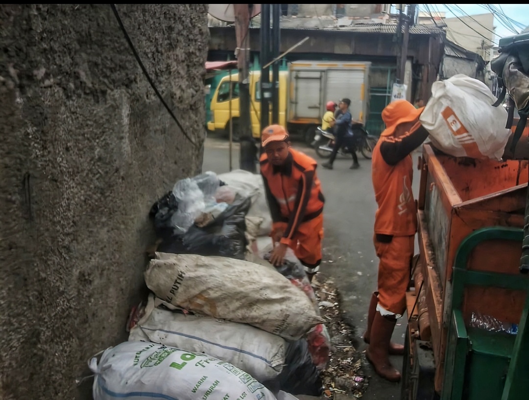Petugas Penanganan Prasarana dan Sarana Umum (PPSU) Kelurahan Jembatan Lima dan Sudis Lingkungan Hidup (LH) Jakarta Barat bergerak cepat menangani tumpukan sampah sisa libur Lebaran Hari Raya Idulfitri 2026.