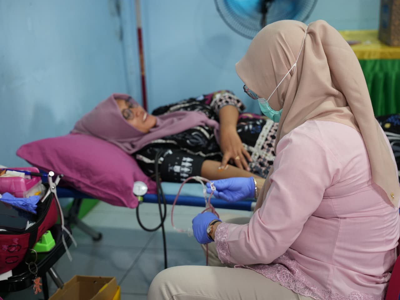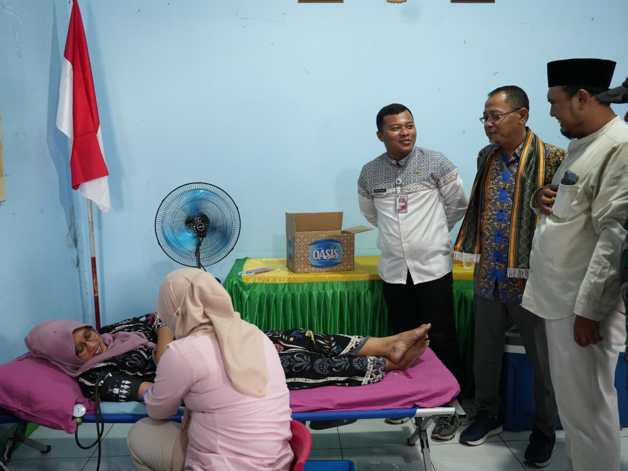 Lurah Wijaya Kusuma, Fajar Hidayat saat meninjau kegiatan donor darah menjadi rangkaian rangkaian acara dalam rangka memperingati Maulid Nabi Muhammad SAW 1447 H.