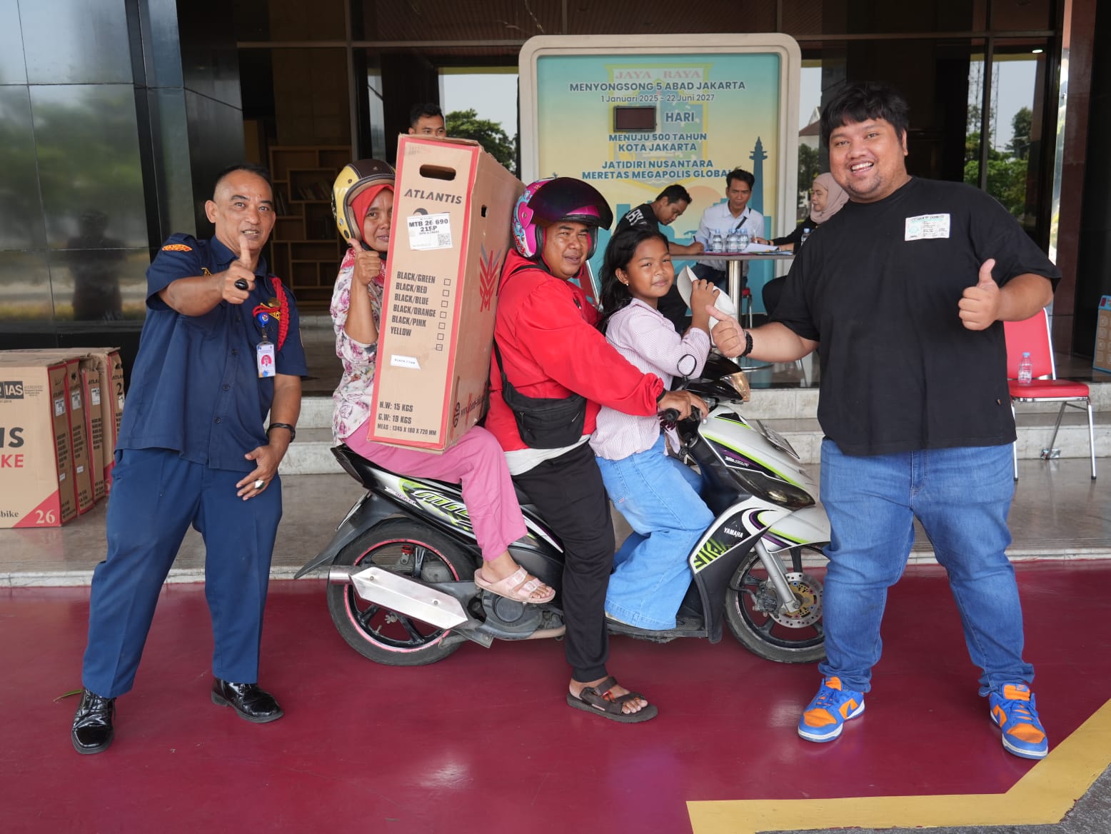 Selain sepeda, acara distribusi besar di Monas tersebut juga menyediakan berbagai hadiah lain, termasuk motor listrik bagi warga yang beruntung dari seluruh penjuru Jakarta. (Lam)