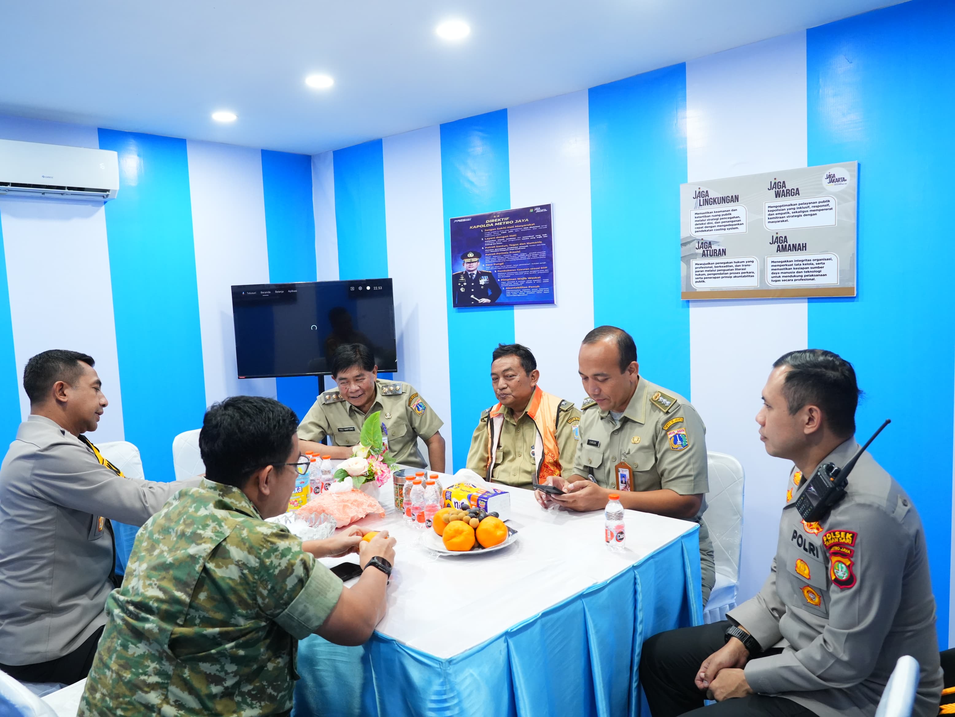 Titik pertama yang disambangi adalah pos pengamanan di depan Central Park, Jalan S. Parman. Setibanya di lokasi, Yuli Hartono disambut hangat oleh Camat Grogol Petamburan, Raditian Ramajaya, beserta para lurah setempat.
