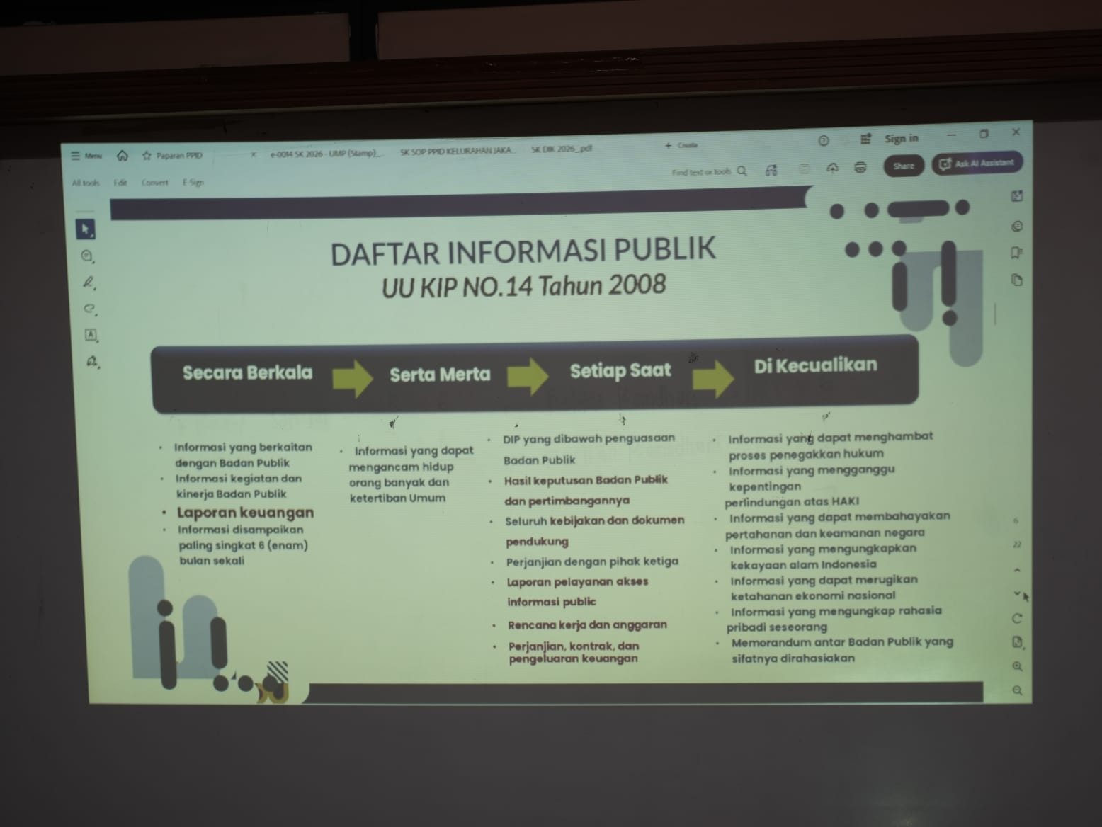 Dalam upaya meningkatkan transparansi dan kualitas pelayanan publik, Pemerintah Kota Administrasi Jakarta Barat melakukan kegiatan Monitoring dan Evaluasi (Monev) Pendampingan Pejabat Pengelola Informasi dan Dokumentasi (PPID) di Kantor Kecamatan Kebon Jeruk, Kamis (26/2).