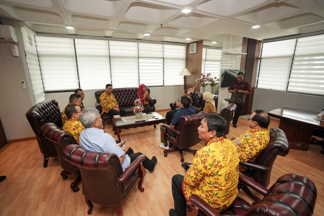 Wali Kota Jakarta Barat, Iin Mutmainnah melakukan audiensi dengan jajaran pimpinan Universitas Trisakti yang berlangsung di ruang rapat rektor, Gedung M kampus tersebut, Kamis (5/3).