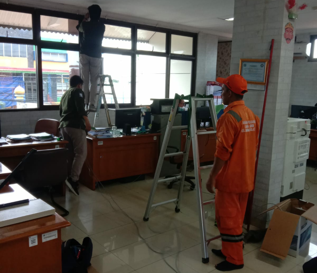 Suku Dinas Komunikasi Informatika dan Statistik (Kominfotik) Jakarta Barat melaksanakan Recabling Jaringan di Kantor Kelurahan Sukabumi Selatan, Kecamatan Kebon Jeruk, Jumat (6/2).