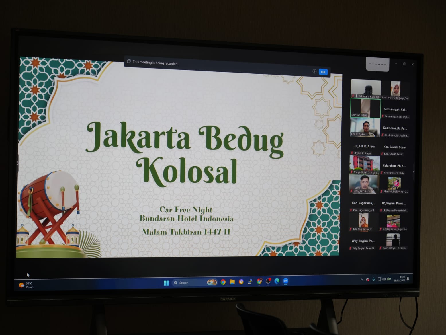 Pemerintah Provinsi (Pemprov) DKI Jakarta mulai mematangkan persiapan perhelatan budaya dan keagamaan bertajuk 'Jakarta Bedug Kolosal' di kawasan Bunderan HI, Jakarta Pusat.
