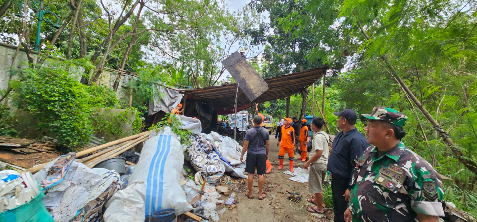 Baca SelengkapnyaPetugas gabungan Kecamatan Kembangan melakukan pembersihan sampah dan puing bangunan pasca penertiban di sepanjang Jalan Inspeksi...