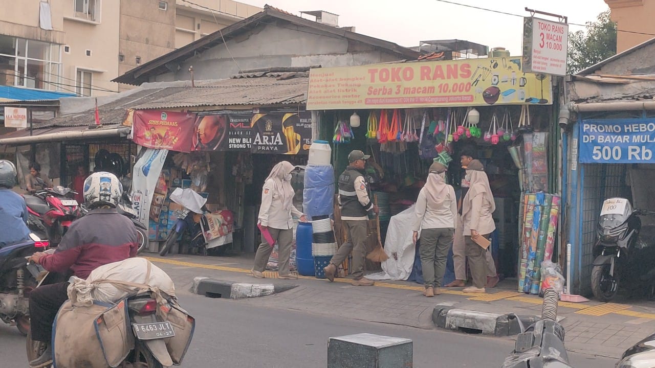 Satuan Polisi Pamong Praja (PP) Kecamatan Cengkareng bersama Suku Dinas Perhubungan Jakarta Barat melakukan operasi bina tertib pr...