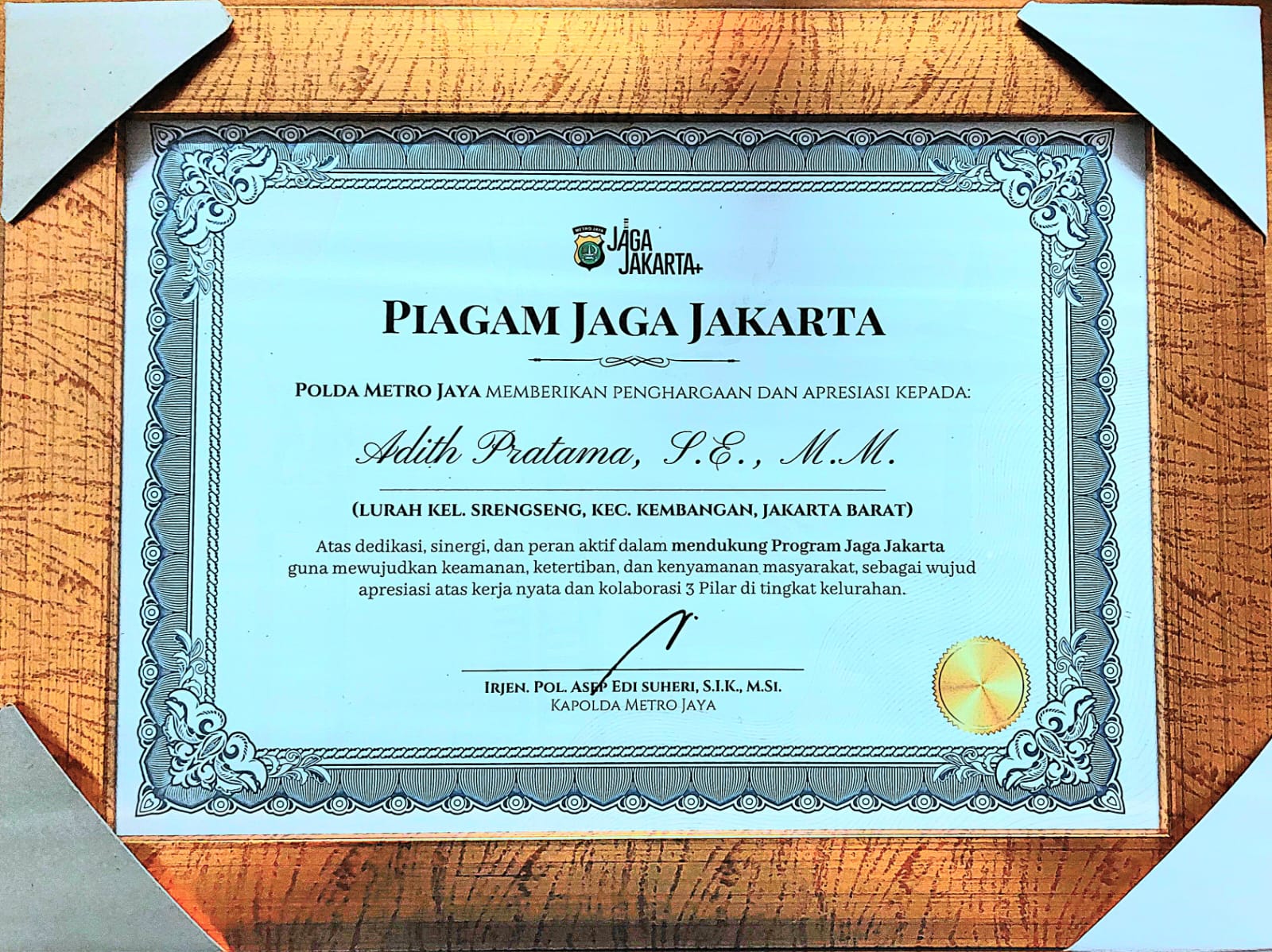 Baca SelengkapnyaLurah Srengseng, Adith Pratama menerima piagam penghargaan dari Kapolda Metro Jaya, Irjen Pol Asep Edi Suheri. Penghargaan juga di...