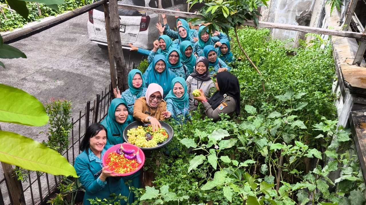 Baca SelengkapnyaTim Penggerak Pemberdayaan Kesejahteraan Keluarga (TP PKK) Kelurahan Taman Sari melakukan panen sayur dan anggur di lokasi urban f...