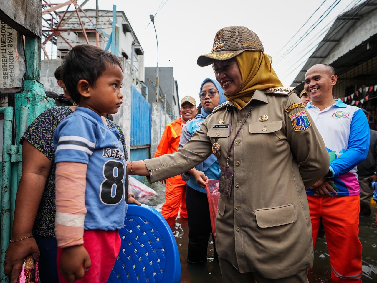 Tak sekadar memastikan alat pengendali banjir, Wali Kota Jakarta Barat, Iin Mutmainnah, juga memastikan penanganan warga yang terdampak banjir.