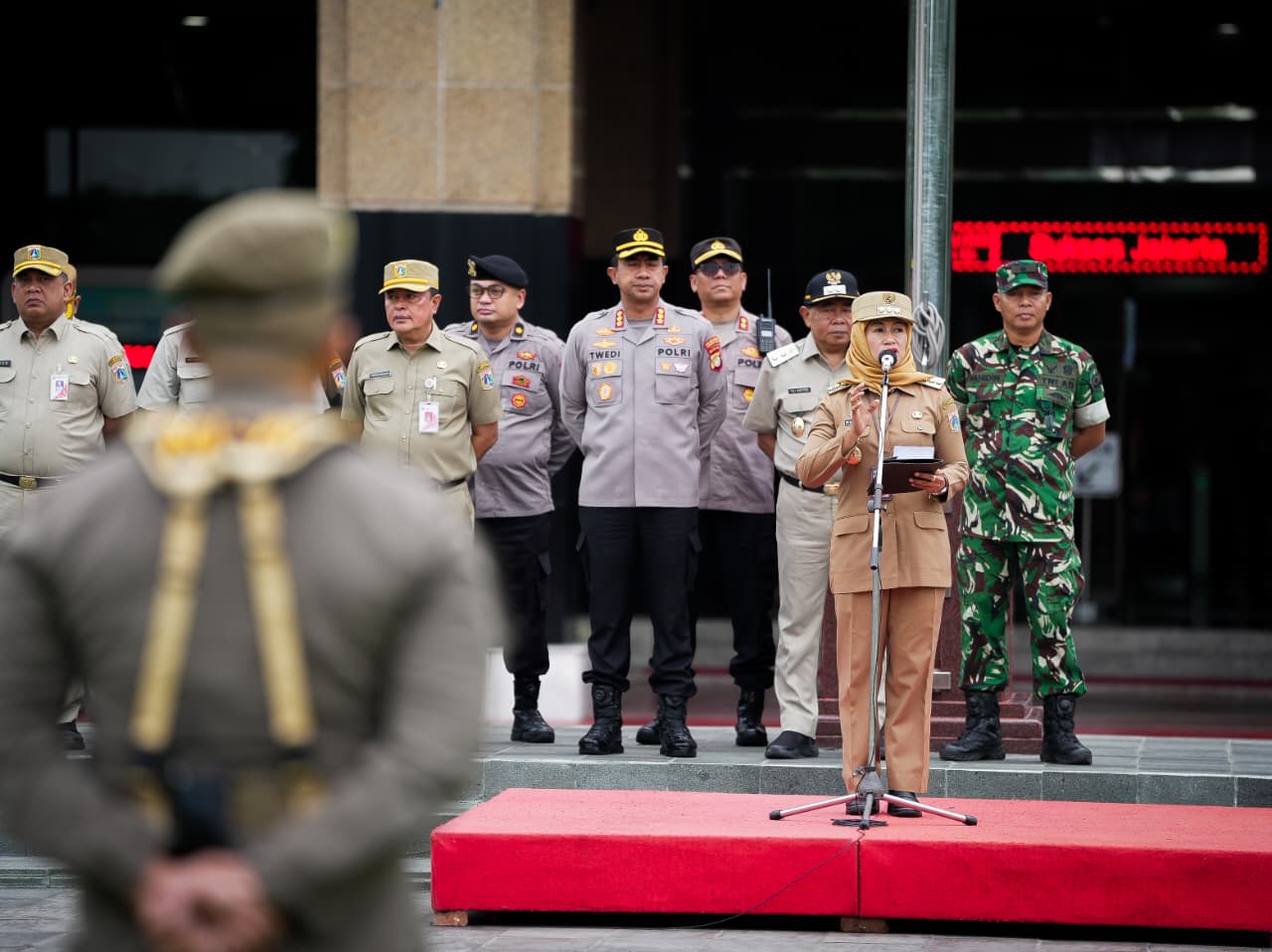 Dipimpin Wali Kota Jakarta Barat Iin Mutmainnah, apel juga diikuti para pimpinan OPD, camat dan lurah se Jakarta Barat. Hadir Wakil Wali Kota Yuli Hartono, Seko Firmanudin Ibrahim, para asisten dan unsur Forum Komunkasi Pimpinan Kota (Forkopimko) Jakarta Barat.