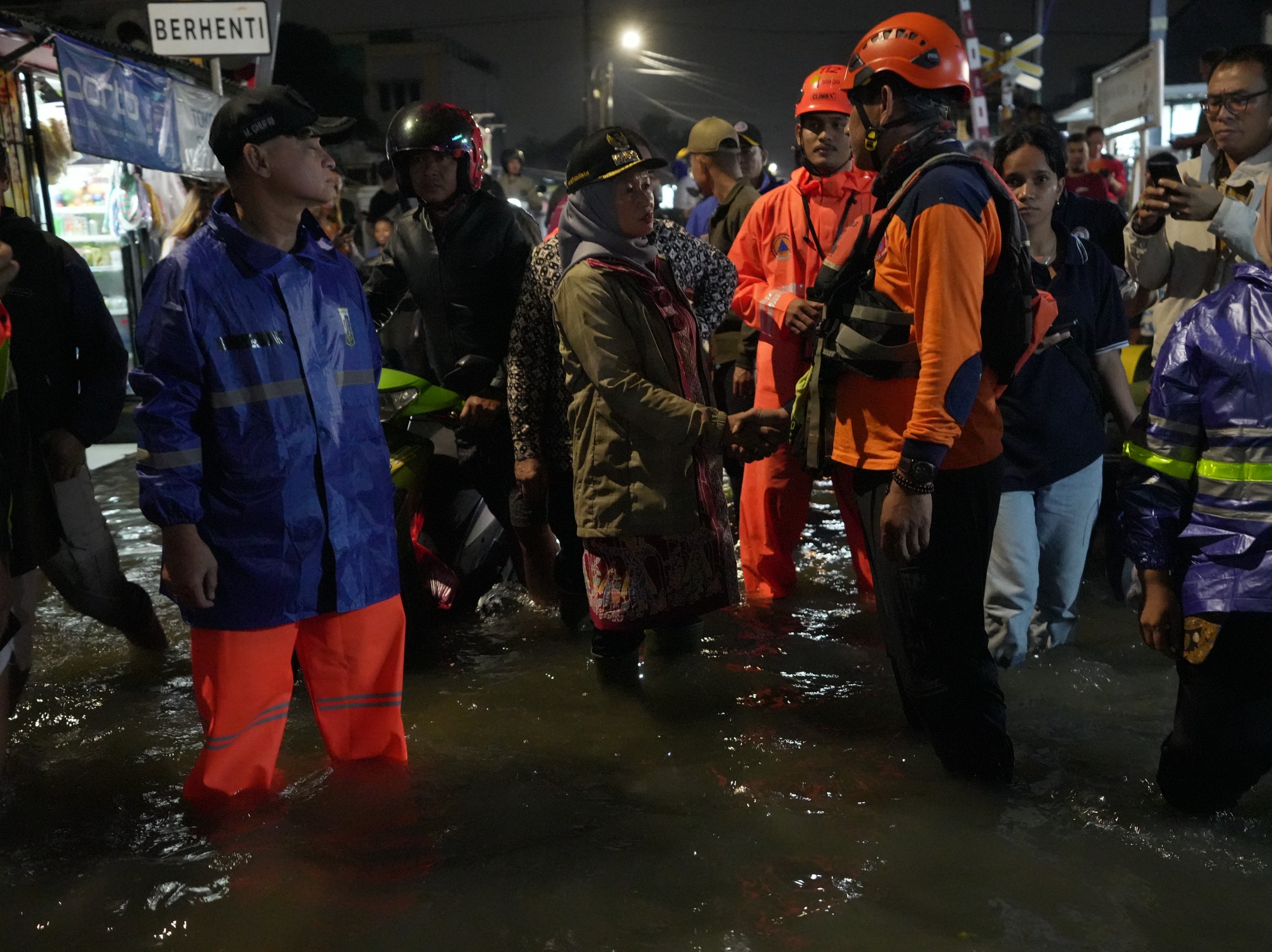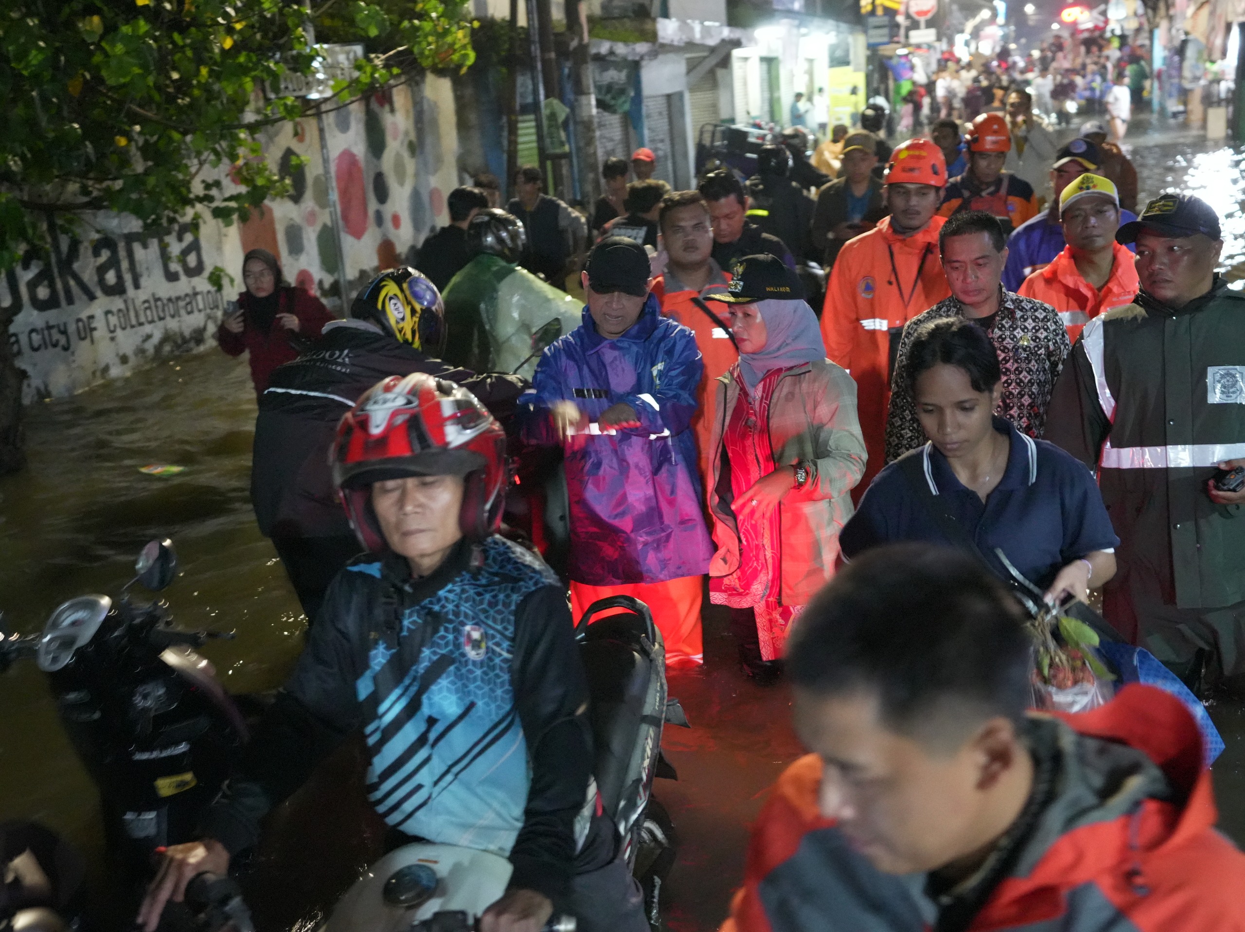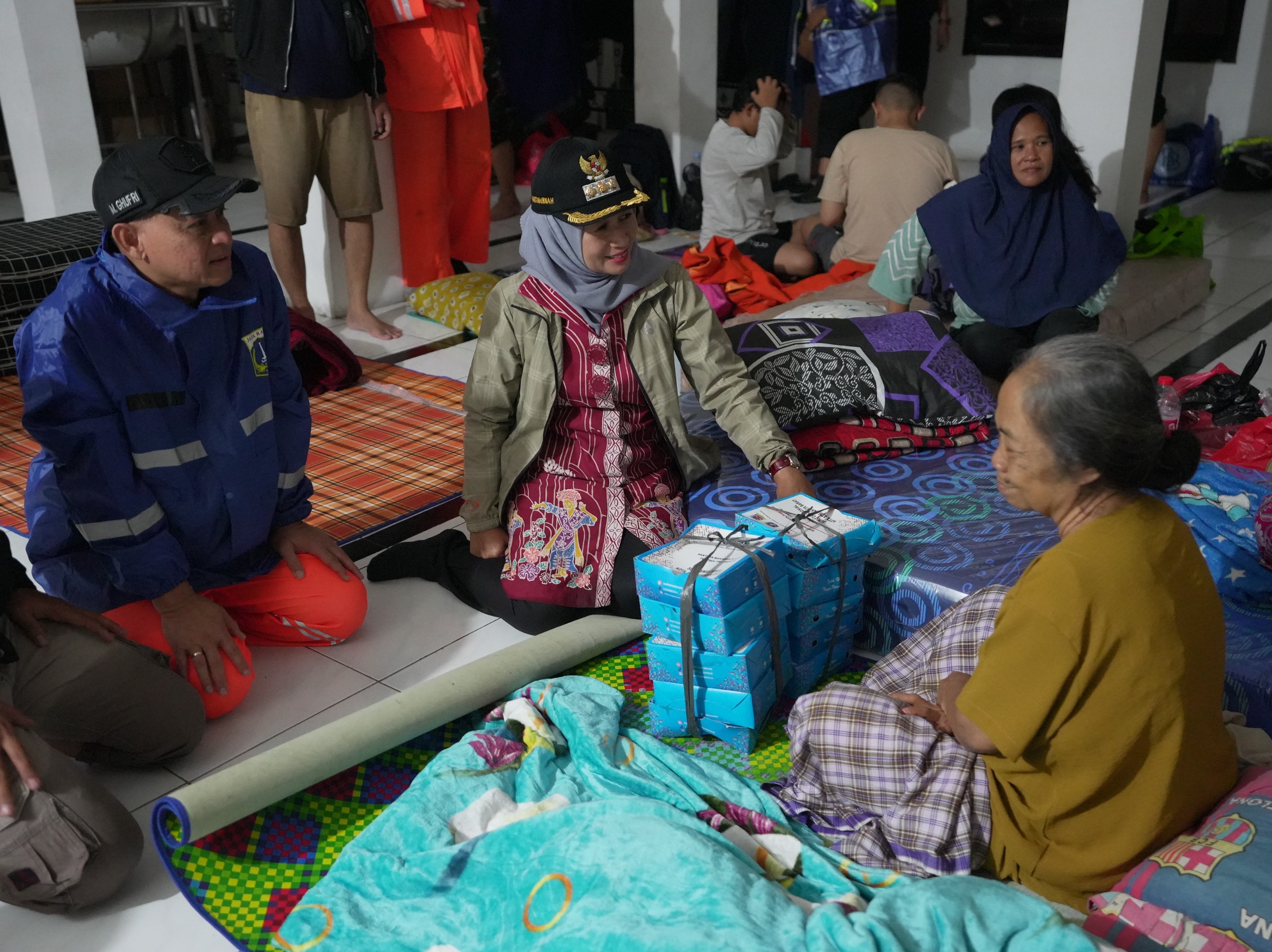 Wali Kota Jakarta Barat, Iin Mutmainnah meninjau pengungsi terdampak genangan dan menyalurkan paket bantuan dasar di wilayah RT 8 RW 1, Rawa Buaya, Cengkareng.