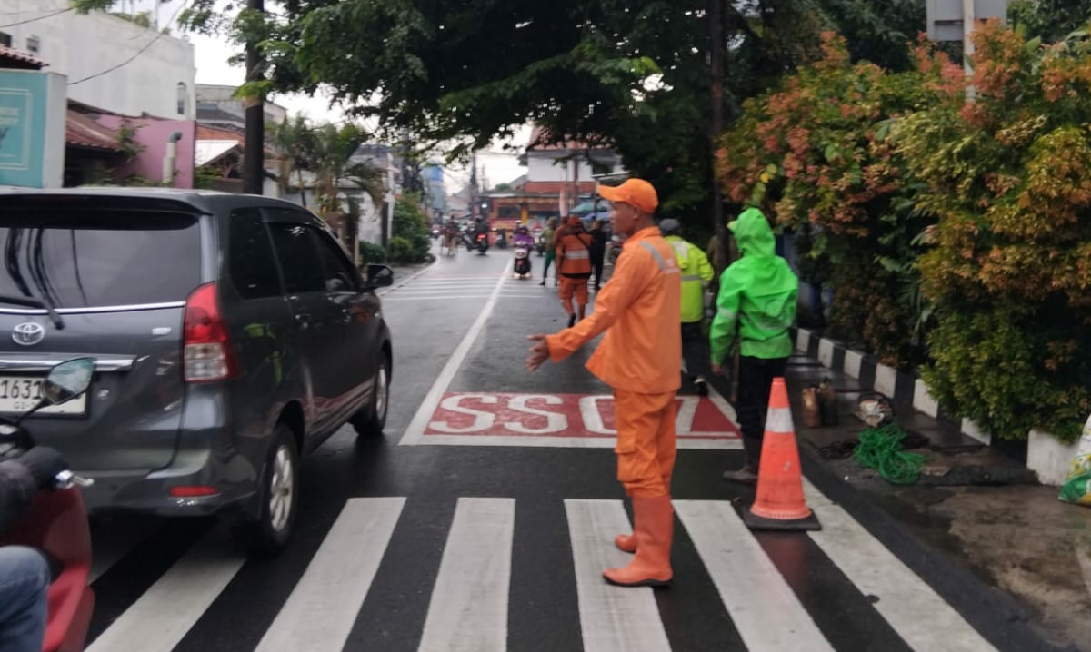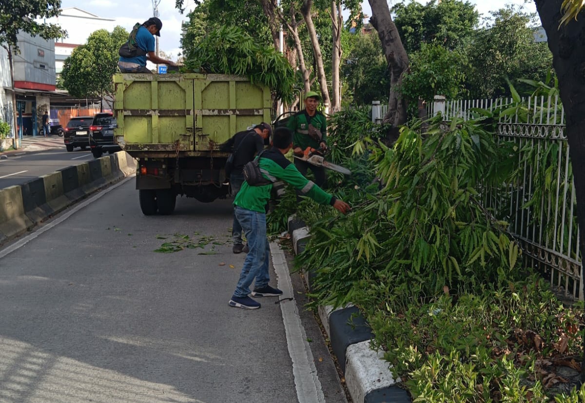 Baca SelengkapnyaPetugas Satpel Pertamanan dan Hutan Kota Kecamatan Kebon Jeruk melakukan penanganan dengan memangk...